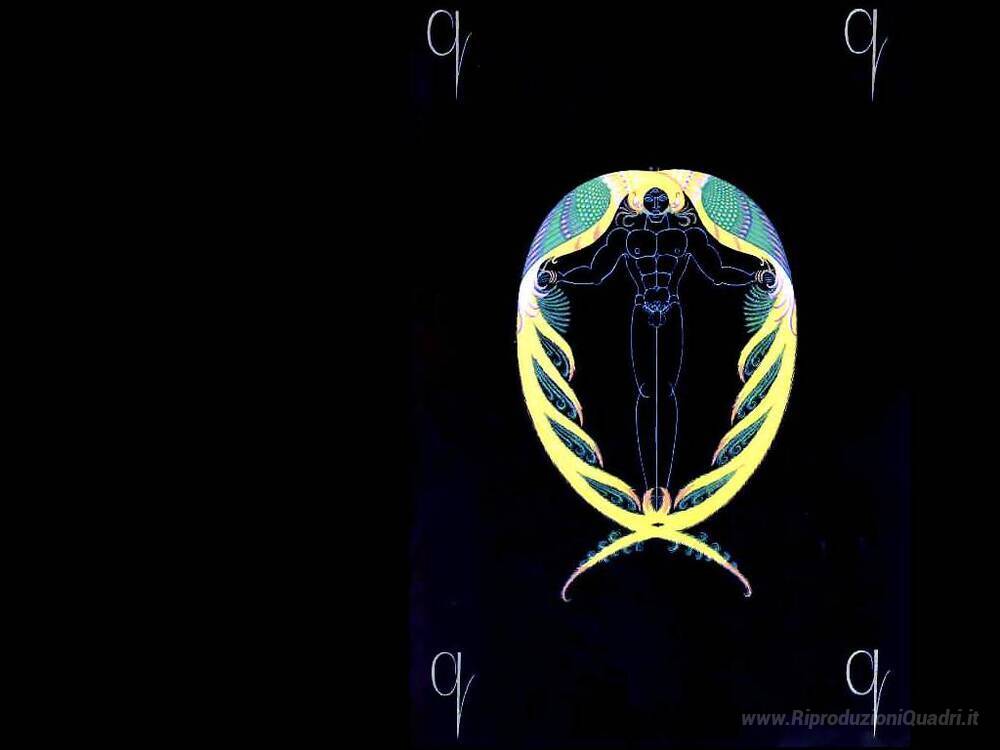 Ti offriamo una riproduzione artigianale su tela dell'opera famosa 'Alfabeto Q' di Erte, dal Museo delle Riproduzioni.