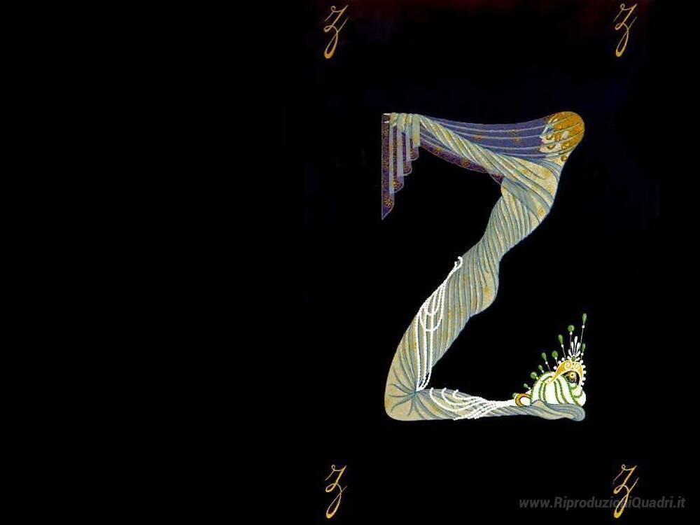 Ti offriamo una riproduzione artigianale su tela dell'opera famosa 'Alfabeto Z' di Erte, dal Museo delle Riproduzioni.