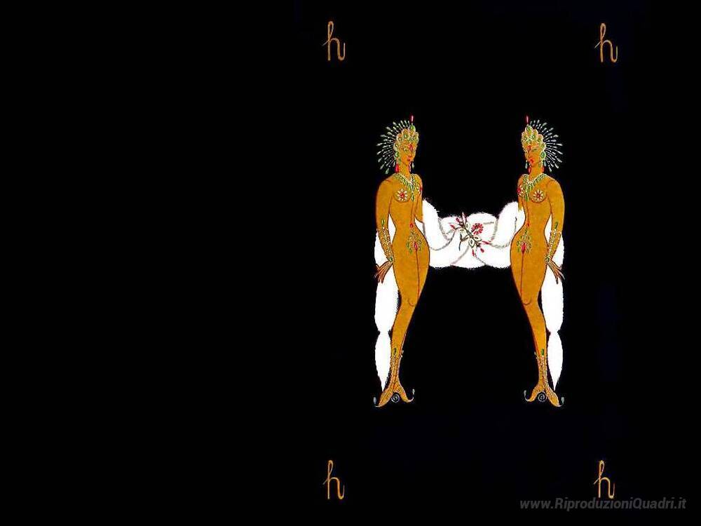 Ti offriamo una riproduzione artigianale su tela dell'opera famosa 'Alphabet H' di Erte, dal Museo delle Riproduzioni.