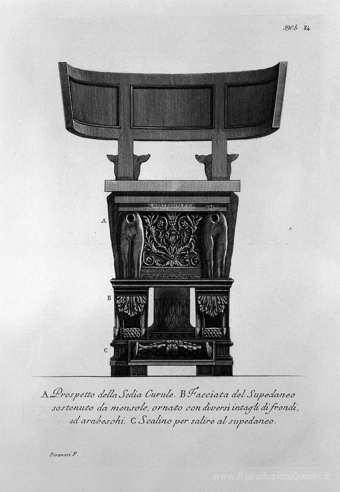 Ti offriamo una riproduzione artigianale su tela dell'opera famosa 'Altre voci della sedia curule, già illustrato nelle precedenti t' di Giovanni Battista Piranesi, dal Museo delle Riproduzioni.