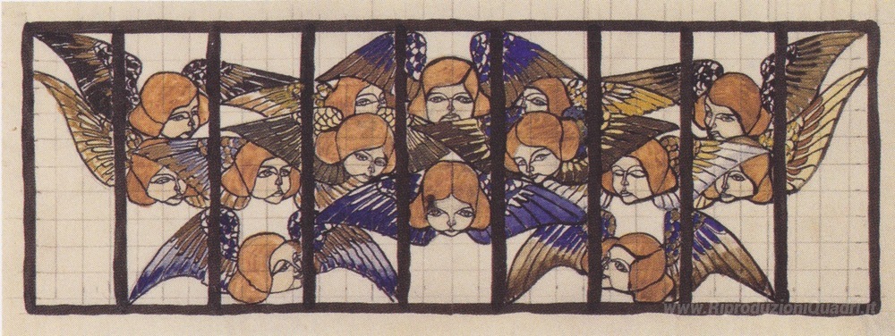 Ti offriamo una riproduzione artigianale su tela dell'opera famosa 'Am Steinhof Chiesa, Design per la finestra rialzo' di Koloman Moser, dal Museo delle Riproduzioni.
