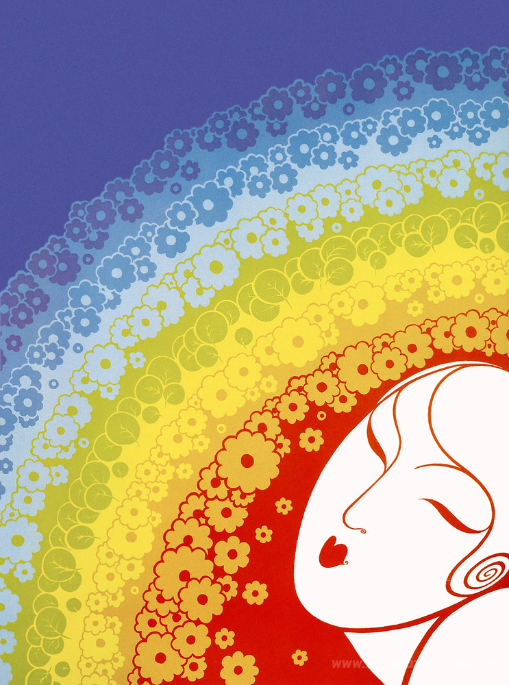 Ti offriamo una riproduzione artigianale su tela dell'opera famosa 'Arcobaleno in fiore' di Erte, dal Museo delle Riproduzioni.