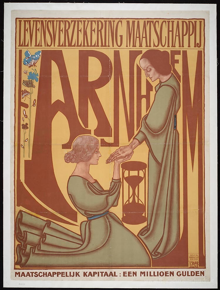 Ti offriamo una riproduzione artigianale su tela dell'opera famosa 'Arnhem Life Insurance Company' di Jan Toorop, dal Museo delle Riproduzioni.