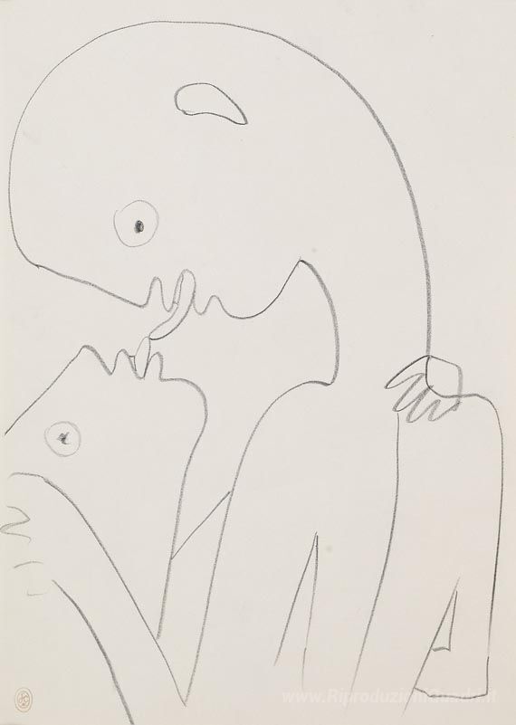 Ti offriamo una riproduzione artigianale su tela dell'opera famosa 'Bacio' di Jean Cocteau, dal Museo delle Riproduzioni.