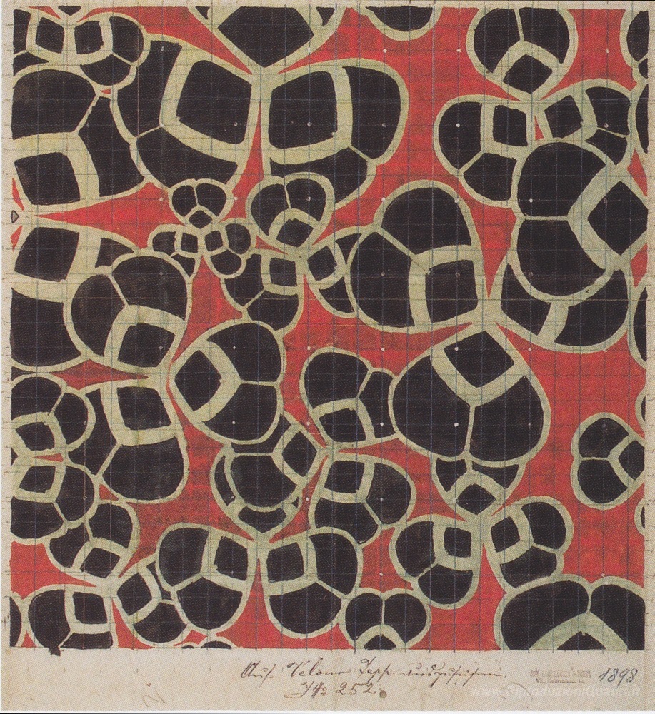 Ti offriamo una riproduzione artigianale su tela dell'opera famosa 'Backhausen Interior TESSILE per l'Hotel Bristol a Bolzano' di Koloman Moser, dal Museo delle Riproduzioni.