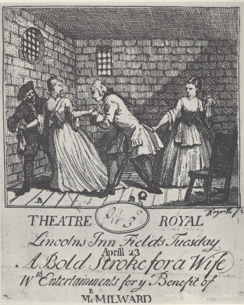 Ti offriamo una riproduzione artigianale su tela dell'opera famosa 'Biglietto di Benefit (Mr Milward) 'A Corsa Bold per una moglie' di William Hogarth, dal Museo delle Riproduzioni.
