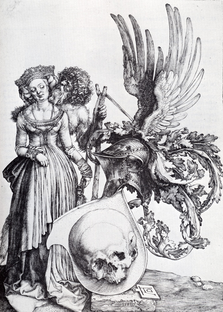 Ti offriamo una riproduzione artigianale su tela dell'opera famosa 'Blasone con un teschio' di Albrecht Durer, dal Museo delle Riproduzioni.