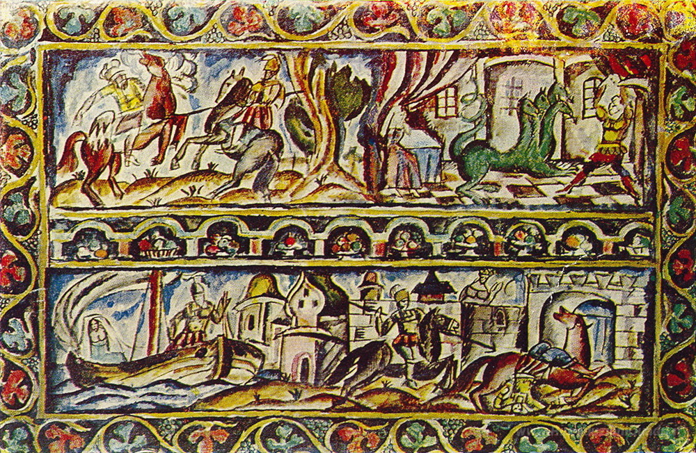 Ti offriamo una riproduzione artigianale su tela dell'opera famosa 'Bova il principe '. Schizzo di una foto.' di Pyotr Konchalovsky, dal Museo delle Riproduzioni.