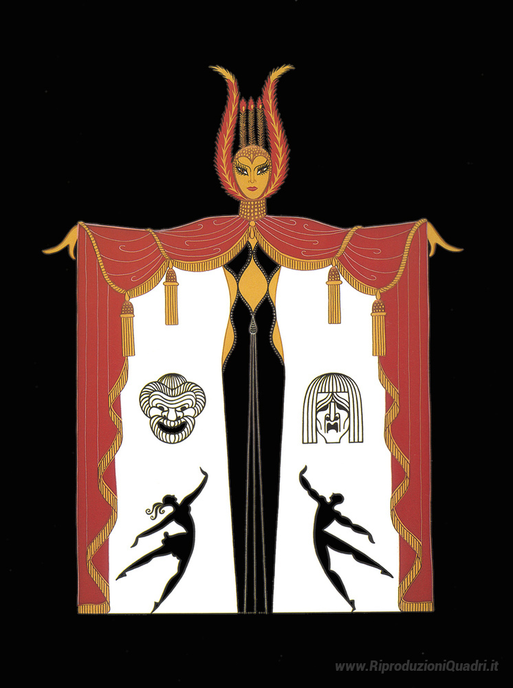 Ti offriamo una riproduzione artigianale su tela dell'opera famosa 'Broadway in Fashion' di Erte, dal Museo delle Riproduzioni.