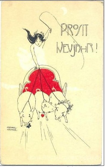 Ti offriamo una riproduzione artigianale su tela dell'opera famosa 'Buon anno' di Raphael Kirchner, dal Museo delle Riproduzioni.