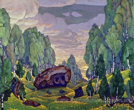 Ti offriamo una riproduzione artigianale su tela dell'opera famosa 'Burrone' di Nicholas Roerich, dal Museo delle Riproduzioni.