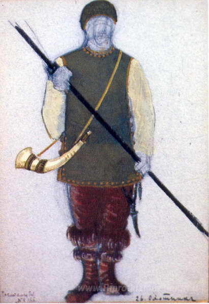 Ti offriamo una riproduzione artigianale su tela dell'opera famosa 'Cacciatore' di Nicholas Roerich, dal Museo delle Riproduzioni.