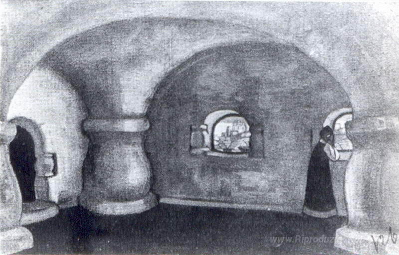 Ti offriamo una riproduzione artigianale su tela dell'opera famosa 'Camera di Sadko' di Nicholas Roerich, dal Museo delle Riproduzioni.