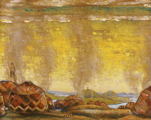 Ti offriamo una riproduzione artigianale su tela dell'opera famosa 'Campo Polovtsian' di Nicholas Roerich, dal Museo delle Riproduzioni.