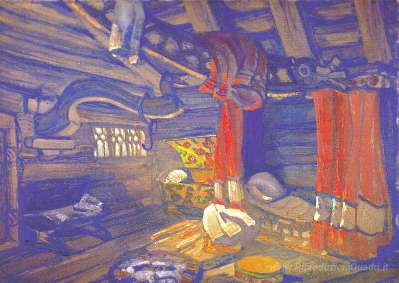 Ti offriamo una riproduzione artigianale su tela dell'opera famosa 'Capanna di oze' di Nicholas Roerich, dal Museo delle Riproduzioni.