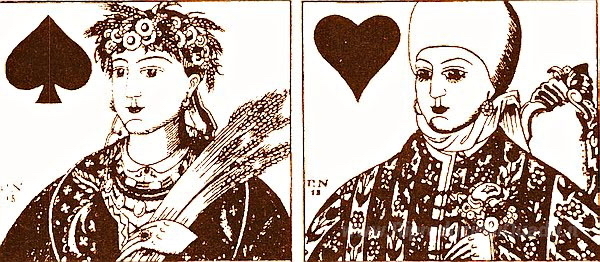 Ti offriamo una riproduzione artigianale su tela dell'opera famosa 'Carte da gioco' di Heorhiy Narbut, dal Museo delle Riproduzioni.
