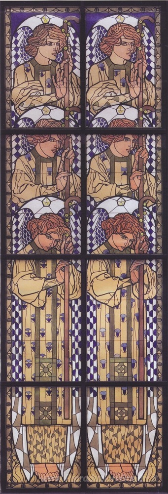 Ti offriamo una riproduzione artigianale su tela dell'opera famosa 'Chiesa Am Steinhof, disegno dell'angelo nella finestra di sinist' di Koloman Moser, dal Museo delle Riproduzioni.