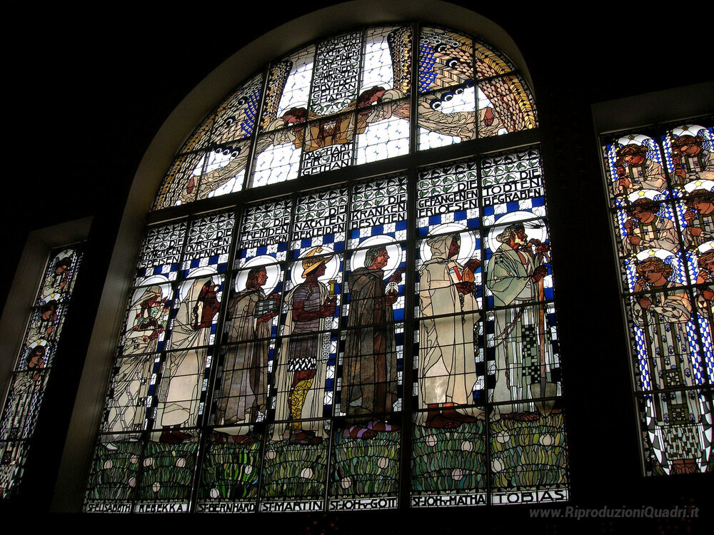 Ti offriamo una riproduzione artigianale su tela dell'opera famosa 'Chiesa Steinhoch a Vienna' di Koloman Moser, dal Museo delle Riproduzioni.