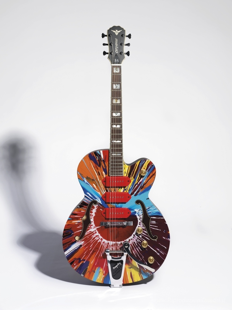 Ti offriamo una riproduzione artigianale su tela dell'opera famosa 'Chitarra Photo' di Damien Hirst, dal Museo delle Riproduzioni.