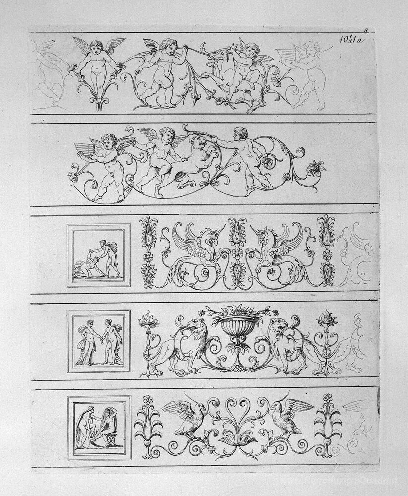 Ti offriamo una riproduzione artigianale su tela dell'opera famosa 'Cinque fregi' di Giovanni Battista Piranesi, dal Museo delle Riproduzioni.