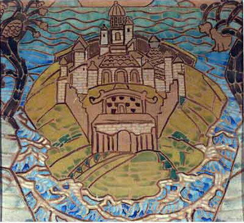 Ti offriamo una riproduzione artigianale su tela dell'opera famosa 'Città (abbozzo per moquette)' di Nicholas Roerich, dal Museo delle Riproduzioni.