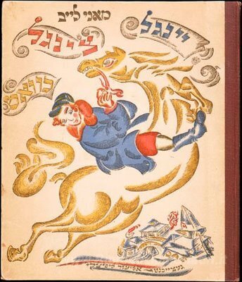 Ti offriamo una riproduzione artigianale su tela dell'opera famosa 'Copertina del libro per 'Ingle-Tsingl-Khvat' di Mani Leib' di El Lissitzky, dal Museo delle Riproduzioni.