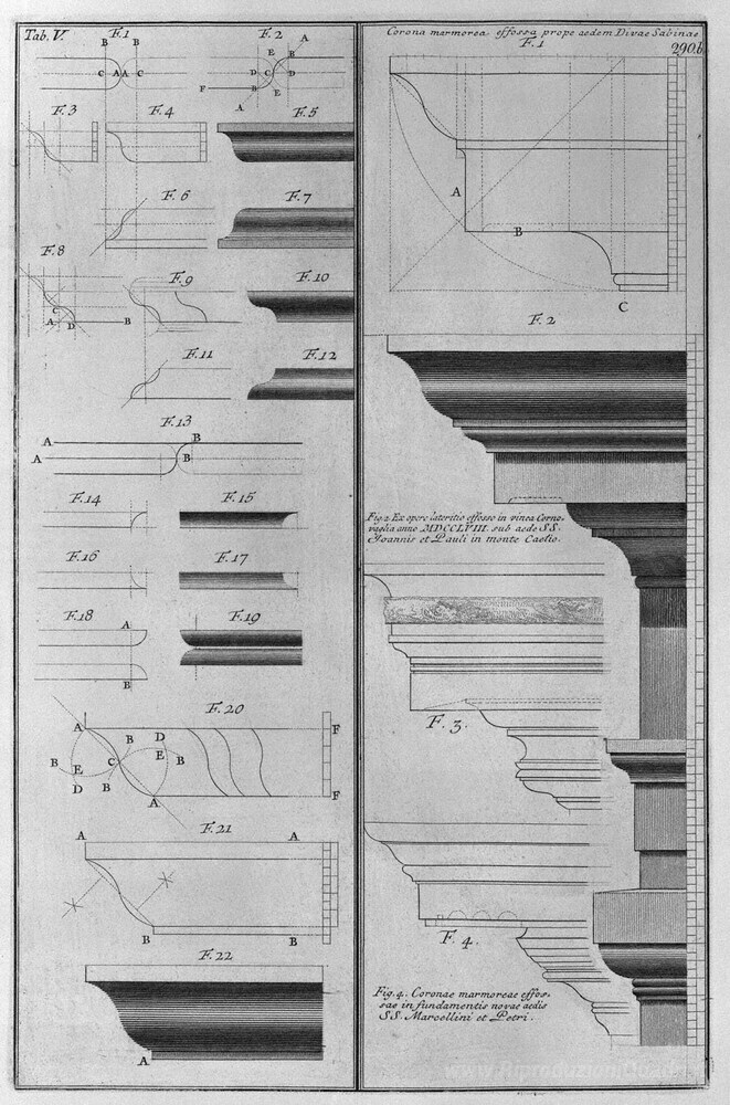 Ti offriamo una riproduzione artigianale su tela dell'opera famosa 'Cornici Modinature' di Giovanni Battista Piranesi, dal Museo delle Riproduzioni.