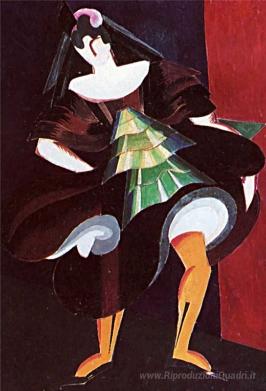 Ti offriamo una riproduzione artigianale su tela dell'opera famosa 'Costume delle donne per la danza spagnola' di Aleksandra Ekster, dal Museo delle Riproduzioni.