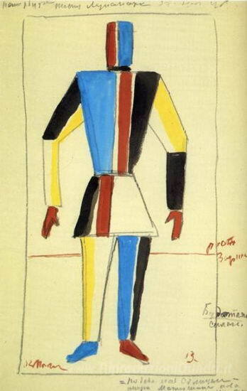 Ti offriamo una riproduzione artigianale su tela dell'opera famosa 'Costume per La vittoria sul Sole Atleta del futuro' di Kazimir Malevich, dal Museo delle Riproduzioni.