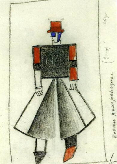 Ti offriamo una riproduzione artigianale su tela dell'opera famosa 'Costume per La vittoria sul Sole Interprete Funeral' di Kazimir Malevich, dal Museo delle Riproduzioni.