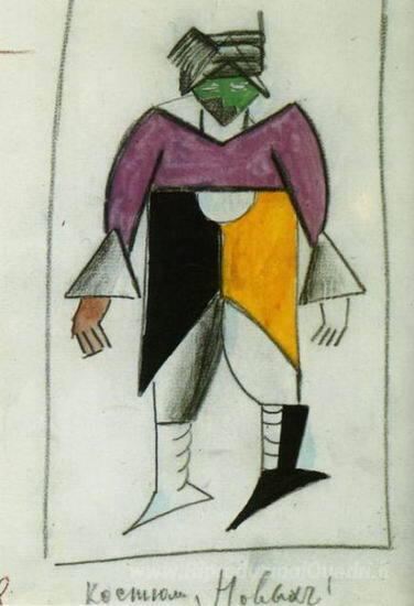 Ti offriamo una riproduzione artigianale su tela dell'opera famosa 'Costume per La vittoria sul Sole L'uomo nuovo' di Kazimir Malevich, dal Museo delle Riproduzioni.
