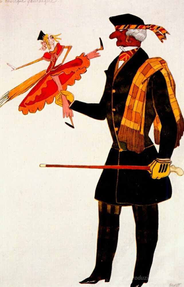 Ti offriamo una riproduzione artigianale su tela dell'opera famosa 'Costume per l'inglese, da La Boutique Fantastique' di Leon Bakst, dal Museo delle Riproduzioni.