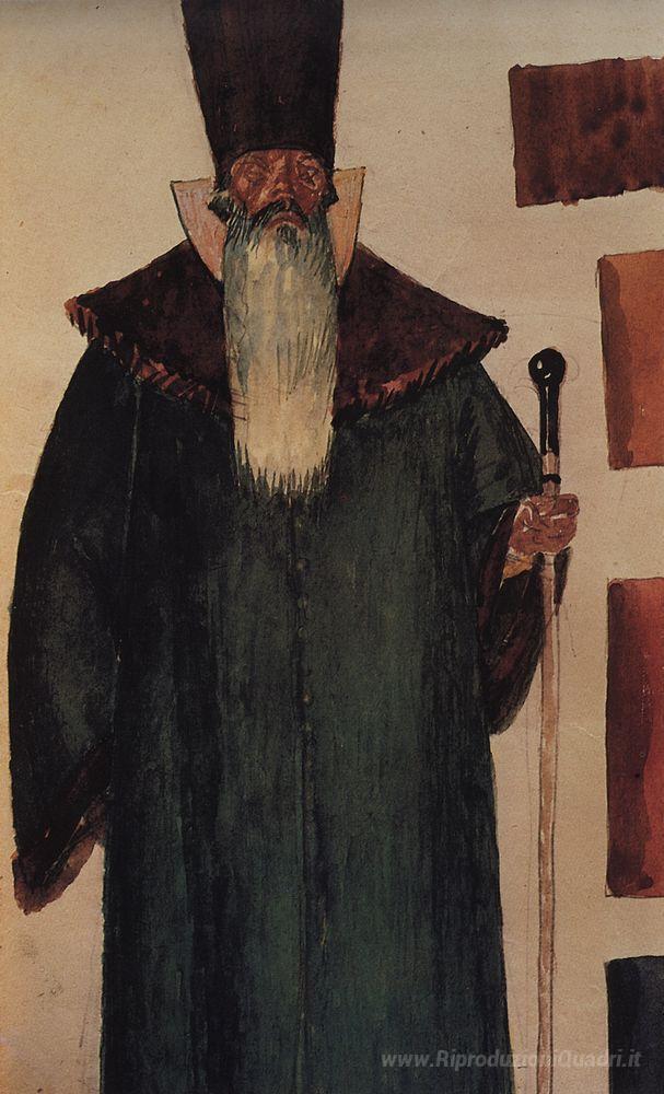 Ti offriamo una riproduzione artigianale su tela dell'opera famosa 'Costumi boiardo alla tragedia di Puskin Boris Godunov' di Kuzma Petrov-Vodkin, dal Museo delle Riproduzioni.