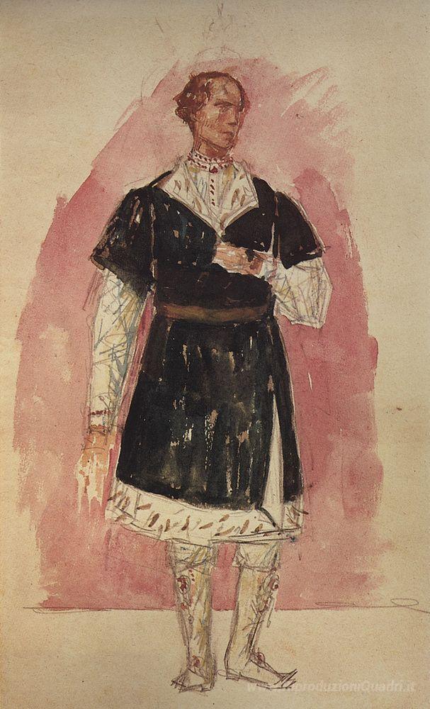 Ti offriamo una riproduzione artigianale su tela dell'opera famosa 'Costumi per la tragedia di Puskin Boris Godunov' di Kuzma Petrov-Vodkin, dal Museo delle Riproduzioni.