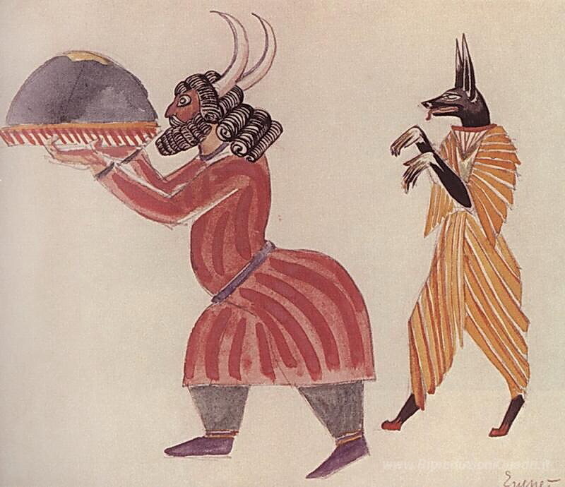 Ti offriamo una riproduzione artigianale su tela dell'opera famosa 'Costumi per l'opera di Rimskij-Korsakov "gallo d'oro '' di Martiros Saryan, dal Museo delle Riproduzioni.