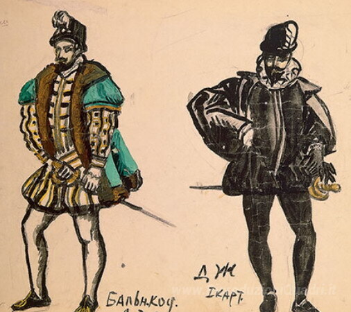 Ti offriamo una riproduzione artigianale su tela dell'opera famosa 'Costumi per l'opera Don Giovanni di Wolfgang Amadeus Mozart, 'Do' di Pyotr Konchalovsky, dal Museo delle Riproduzioni.