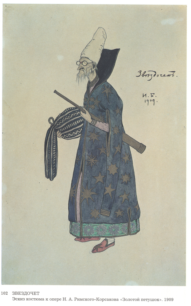 Ti offriamo una riproduzione artigianale su tela dell'opera famosa 'Costumi per l'Opera, Il gallo d'oro, di Nikolai Rimsky-Korsakov' di Ivan Bilibin, dal Museo delle Riproduzioni.