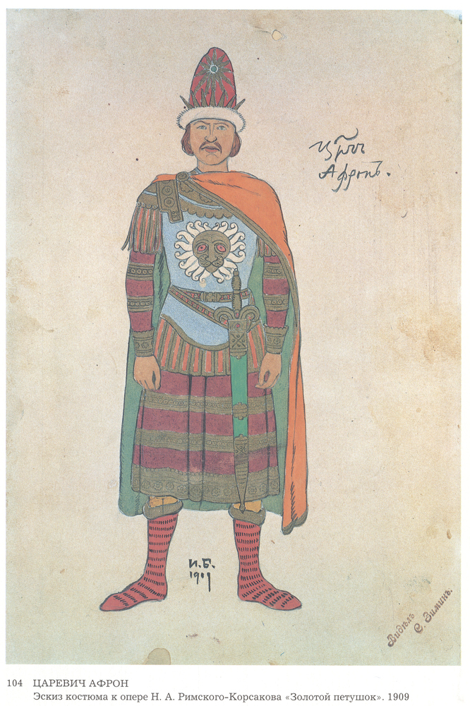 Ti offriamo una riproduzione artigianale su tela dell'opera famosa 'Costumi per l'Opera, Il gallo d'oro, di Nikolai Rimsky-Korsakov' di Ivan Bilibin, dal Museo delle Riproduzioni.
