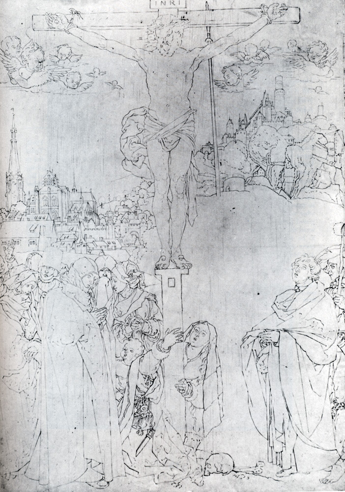 Ti offriamo una riproduzione artigianale su tela dell'opera famosa 'Crocifissione con molte figure' di Albrecht Durer, dal Museo delle Riproduzioni.