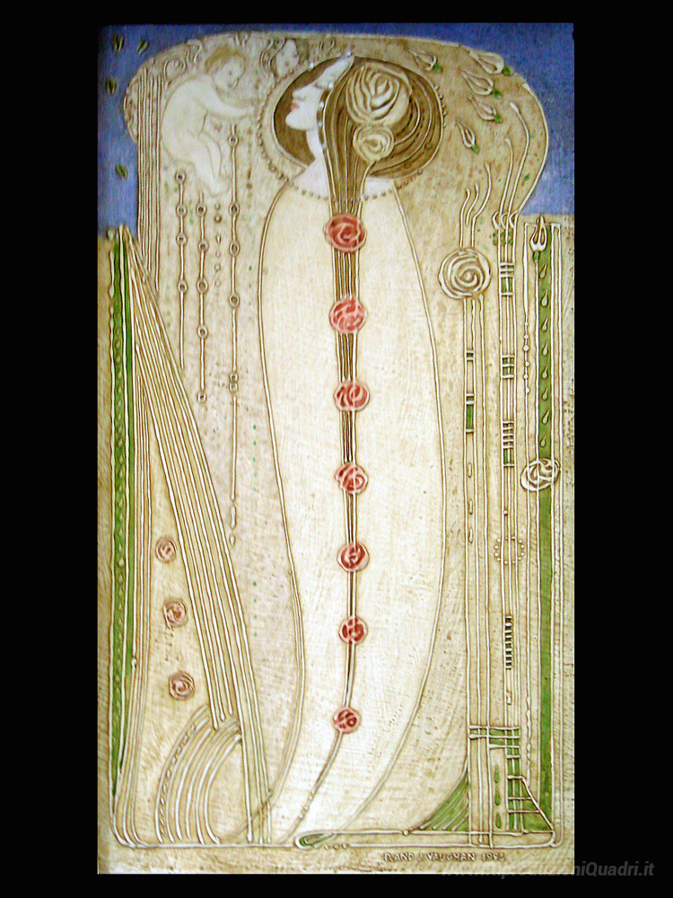 Ti offriamo una riproduzione artigianale su tela dell'opera famosa 'Décor de la salle à manger (Casa per un appassionato d'arte, Gla' di Charles Rennie Mackintosh, dal Museo delle Riproduzioni.