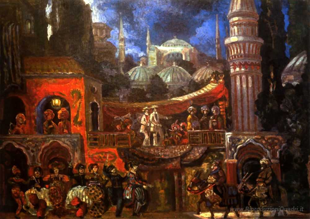 Ti offriamo una riproduzione artigianale su tela dell'opera famosa 'Decorazione per "Entertainment per le ragazze" di Kuzmin' di Serge Sudeikin, dal Museo delle Riproduzioni.