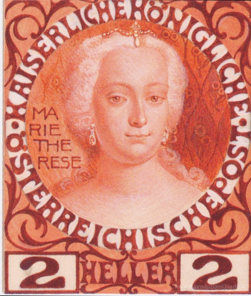 Ti offriamo una riproduzione artigianale su tela dell'opera famosa 'Design per il Timbro anniversario austriaca con l'imperatrice Ma' di Koloman Moser, dal Museo delle Riproduzioni.