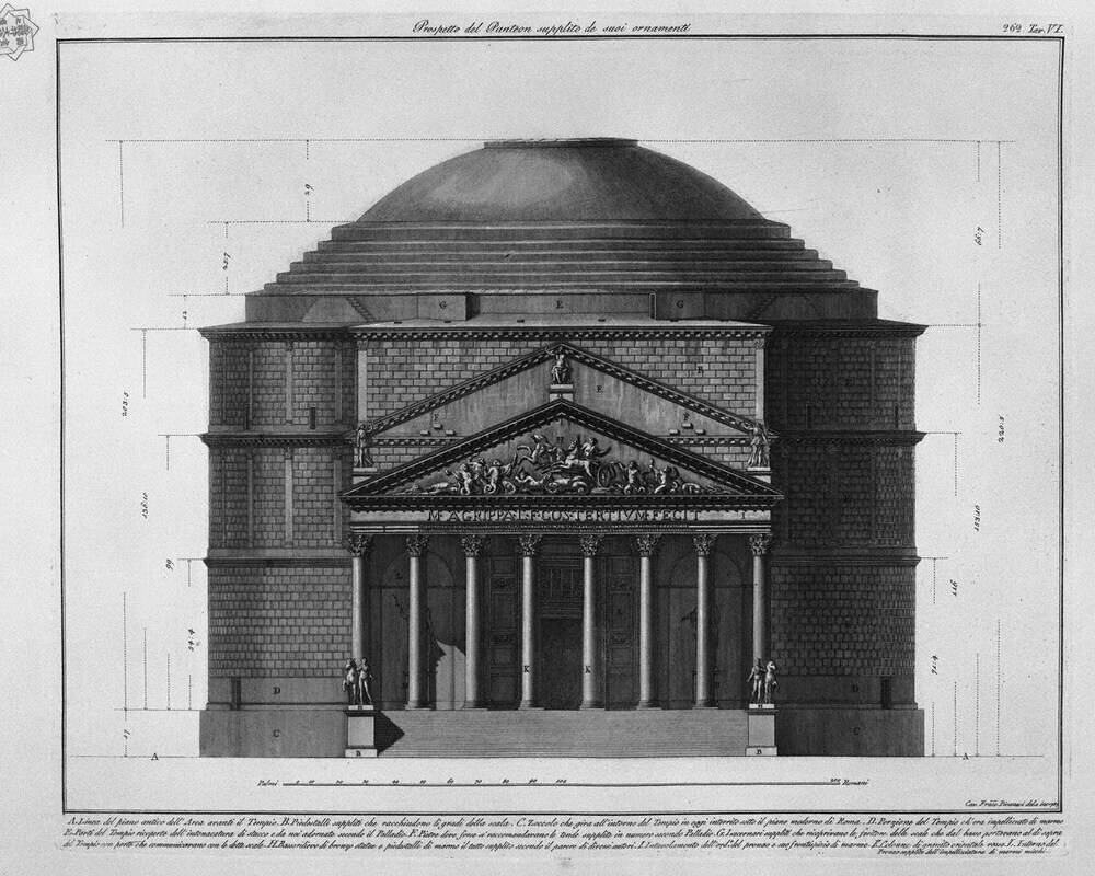 Ti offriamo una riproduzione artigianale su tela dell'opera famosa 'Dichiarazione del Pantheon fornita al `s ornamenti' di Giovanni Battista Piranesi, dal Museo delle Riproduzioni.