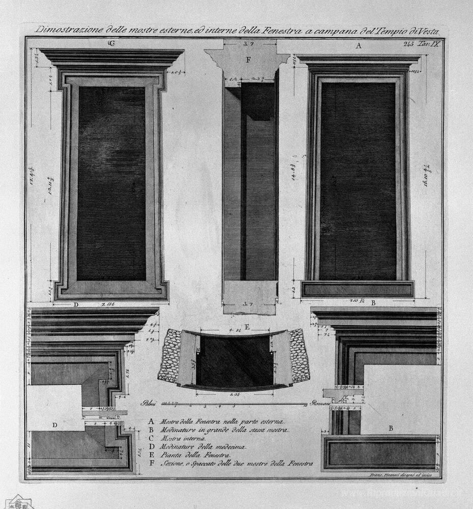 Ti offriamo una riproduzione artigianale su tela dell'opera famosa 'Dimostrazione degli esterni e degli interni della finestra mostr' di Giovanni Battista Piranesi, dal Museo delle Riproduzioni.