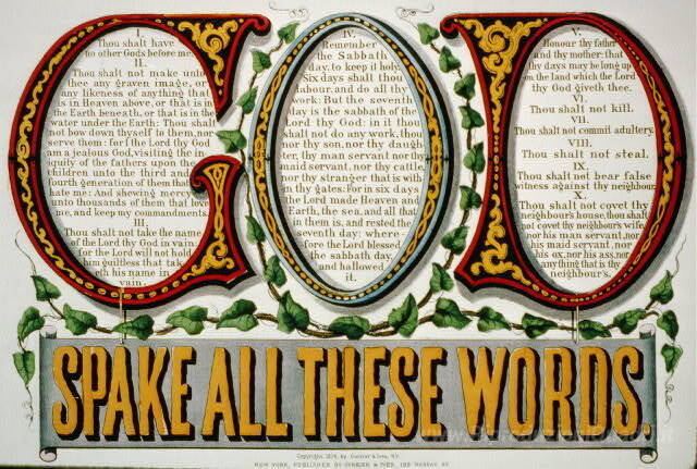 Ti offriamo una riproduzione artigianale su tela dell'opera famosa 'Dio allora pronunciò tutte queste parole 10 comandamenti' di Currier and Ives, dal Museo delle Riproduzioni.