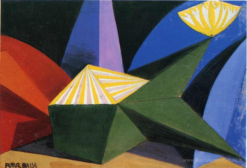 Ti offriamo una riproduzione artigianale su tela dell'opera famosa 'Disegnare per il balletto di Igor Stravinsky: Fuochi d'artificio' di Giacomo Balla, dal Museo delle Riproduzioni.