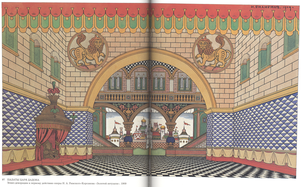 Ti offriamo una riproduzione artigianale su tela dell'opera famosa 'Disegnare per l'Opera, Il gallo d'oro, di Nikolai Rimsky-Korsako' di Ivan Bilibin, dal Museo delle Riproduzioni.