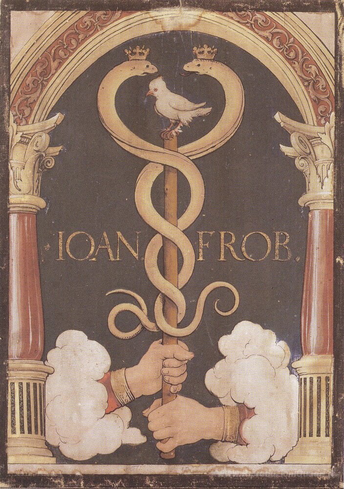 Ti offriamo una riproduzione artigianale su tela dell'opera famosa 'Dispositivo della stampante di Johannes Froben' di Hans Holbein the Younger, dal Museo delle Riproduzioni.