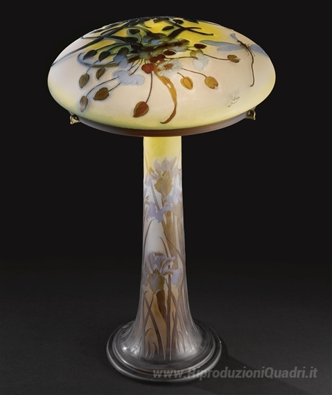 Ti offriamo una riproduzione artigianale su tela dell'opera famosa 'Dragonfly Table Lamp' di Emile Galle, dal Museo delle Riproduzioni.