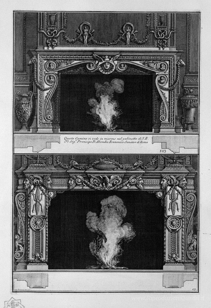 Ti offriamo una riproduzione artigianale su tela dell'opera famosa 'Due camini sovrappongono: il supporto con una maschera di Medusa' di Giovanni Battista Piranesi, dal Museo delle Riproduzioni.